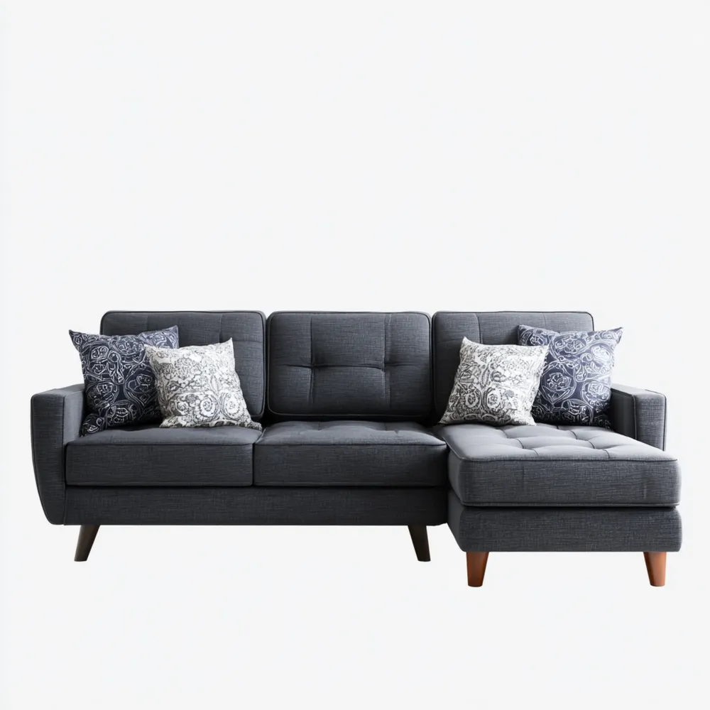 Divano angolare in tessuto morbido 250x150x90 cm – Nero – Design moderno