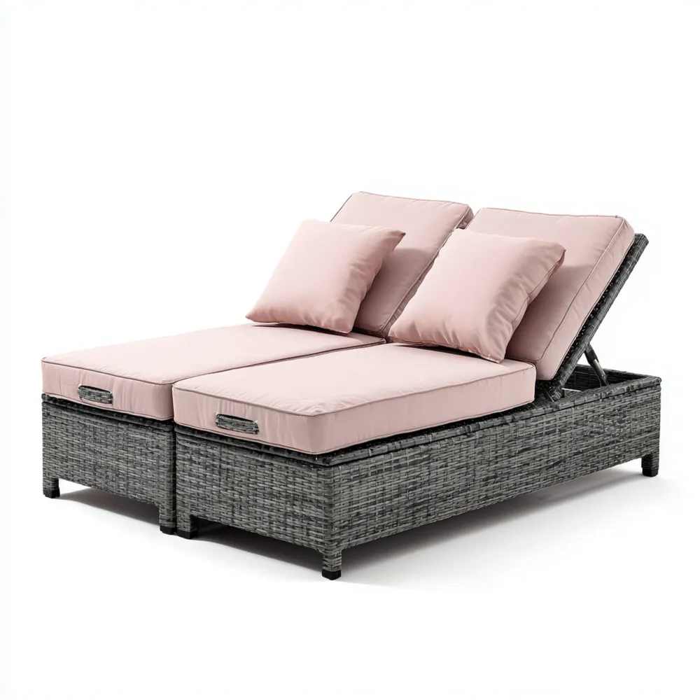 Lettino prendisole in rattan 210x140x35 cm - Grigio/Nero/Rosa - Design contemporaneo